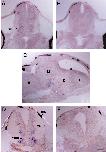 section at the level of the rostral midbrain of a stage 40 tadpole shows weak digoxygenin-positive cell bodies in dorsal and ventralmidbrain