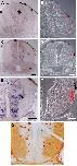 digoxygenin-positive cell bodies (E; black arrow) that lay in close proximity to branching retinal arbors (F; white arrow). As seen by the