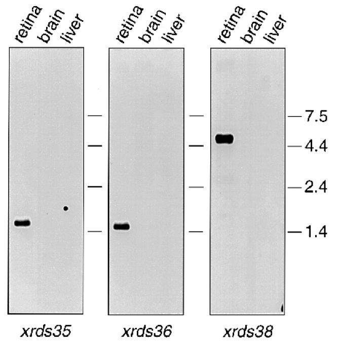 approximately 5 kb in Xenopus retina. None detect mRNAs in