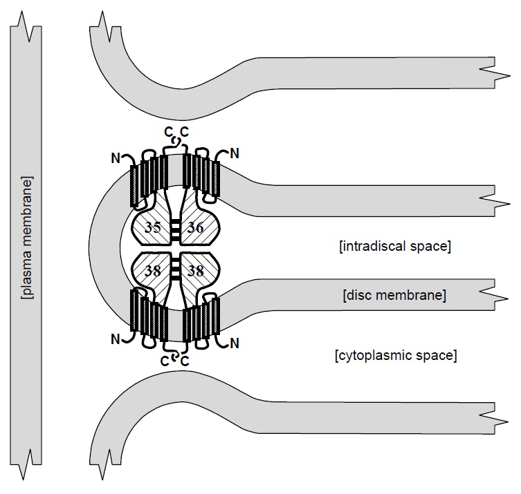 cone discs form rds/peripherin-rich hairpin loops that lie in