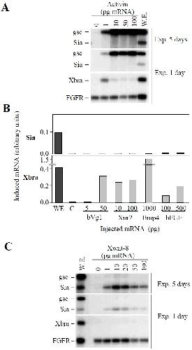 (A,B) Injection of mRNA coding for mesoderm inducers in animal