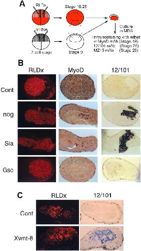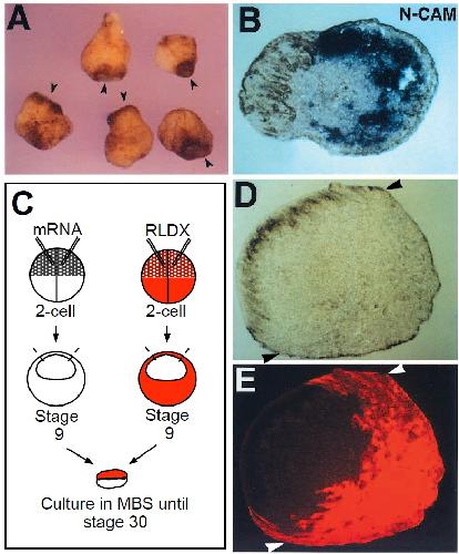 Siamois mRNA and an RLDx-injected animal cap. Arrowheads mark