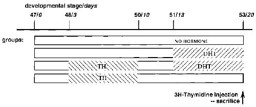 or dihydrotestosterone (DHT). All tadpoles received an injection of [3H]thymidine at stage 53 and were killed 30 min later.