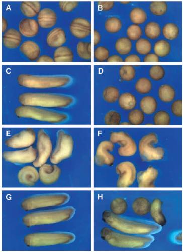 curved neural axis. Antisense-injected embryos can be rescued to