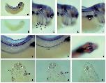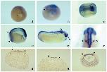 Fig. 4. Localization of integrin a6 mRNA in early Xenopus embryos by whole-mount in situ hybridization. Stage 11.5 (A, dorsal side at top)