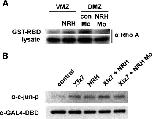 Fig. S2. NRH regulates RhoA activity and JNK activity. (A) NRH mRNA (500 pg) was introduced into VMZs while the con Mo (16.8 ng) or the NRH Mo (16.8 ng) was injected into DMZs. One hundred explants were isolated at stage 10.5 and used in the pull-down assay as described ( Habas et al., 2003 and Ren et al., 1999). NRH mRNA introduced VMZ cells showed up-regulation of RhoA activity, which is almost quiescent in uninjected VMZ cells. NRH Mo introduced DMZ cells exhibited down-regulation of RhoA activity, which is much highly activated in DMZ cells. (B) Using AC cells, we investigated whether NRH could induce JNK activation. NRH (500 pg), Xfz7 (400 pg), and NRH Mo (16.8 ng) were co-injected with GAL4-DBD (100 pg) into the two blastomeres at the 2-cell stage as described (Kinoshita et al., 2003). At the blastula stage, animal cap cells were isolated and immediately processed for western blotting. Anti-phosphorylated c-Jun antibody (rabbit) and anti-GAL4 antibody (mouse) were used to detect JNK activation. |