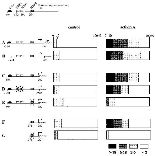 explants treated with activin A. The injected promoter mutants (A-G) correspond to the