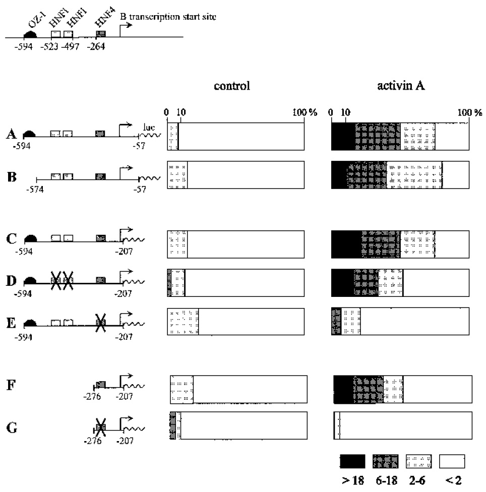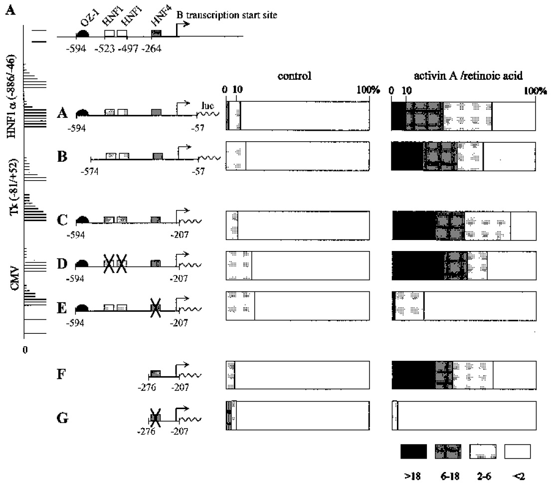 Fig. 7. Activation of the luciferase gene driven by HNF1a promoter mutants in ectoderm