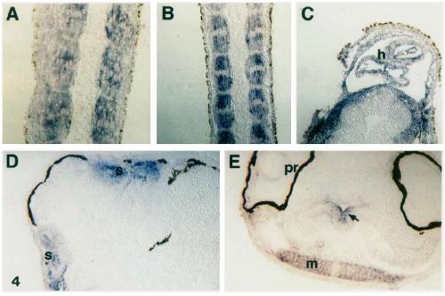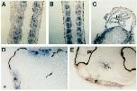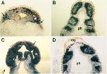 dorsal section of the embryo in B shows hybridization in the neural tube
