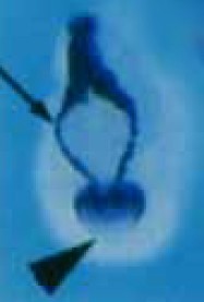 Fig. 1. Morphology, histology, and morphogenesis of the anuran cement gland. A: The Xenopus laevis cement gland. Xenopus embryos have a single conical cement gland. A whole tailbud stage embryo is shown on the left (redrawn from Nieuwkoop and Faber, 1967). Arrowhead: cement gland. A longitudinal section through half of the cement gland is shown on the right. Plane of section is shown on whole embryo. Inner ectoderm: the inner layer of the ectoderm beneath the cement gland. Redrawn from Lyerla and Pelizzari (1976). CG: the length of cement gland cells. Storage vesicle: contains lipids. Epidermis: the outer layer of the ectoderm covers the cement gland cells leaving only the secretory tips uncovered. 6: The cement glands of Rana plafyrrhinus and R. esculenta are bifurcated. A whole R. plafyrrhinus embryo at hatching stage is shown on the left, and on the right a longitudinal section through half of one of the cement glands of its close relative R. esculenta. Plane of section is shown on whole embryo. Redrawn from Lieberkind, 1937. Arrowhead: Cement gland. C: Development of cement glands in R. esculenfa, on which Johannes Holtfreter did much of his work. The cement gland primordium begins as a pigmented patch of cells which invaginate to form a V-shaped groove through which the elongated cement gland cells project. By hatching stage, the cement gland has completely separated into a paired organ. Arrowheads indicate the position of the cement gland. Redrawn from Lieberkind (1937).