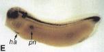 sall3 ( sal-like 3 ) gene expression in Xenopus laevis embryos, NF stage 31, as assayed by in situ hybridization. Dorso-Lateral view: anteriorleft, dorsal up (rotated slightly down along long axis of embryo).