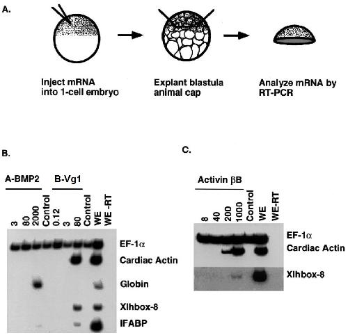 RT-PCR. (B) To express the mature forms of Vg1 and BMP-2, mRNA encoding chimeric