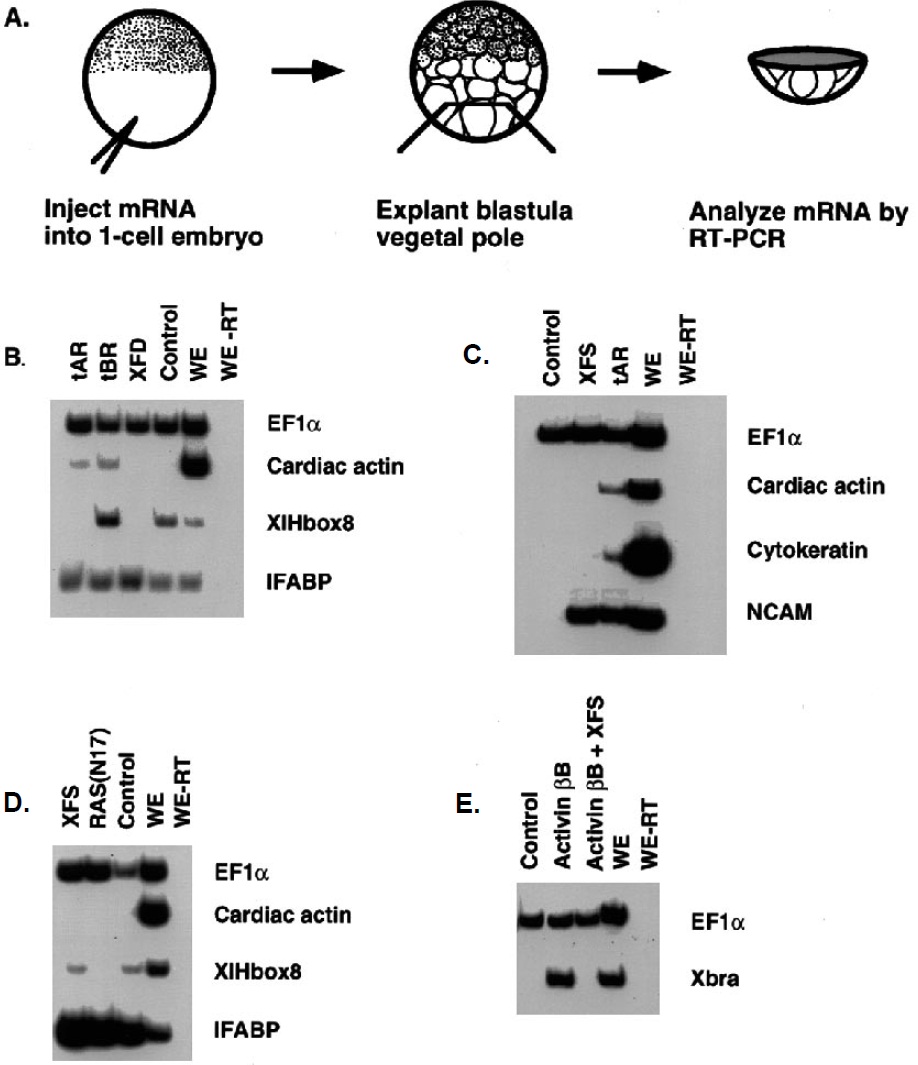 (C) Activin can induce cardiac actin, IFABP (data not shown) and Xlhbox-8 in animal