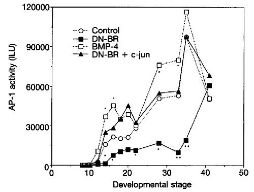 FIG. 1. Effects on AP-1 activity by BMP-4 signals in the Xenopus