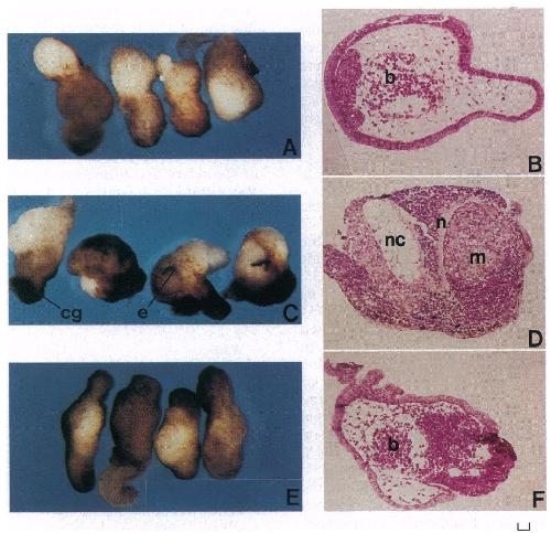 notochord (F). The reversed phenotypes were similar to those of the control ,B-galactosidase mRNA-injected explants (A and B). [Bar = 156 ,um