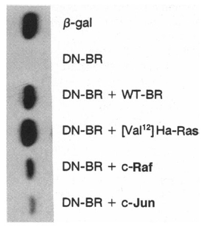 FIG. 3. Effects of [Va112]Ha-Ras, c-Raf, and c-Jun on DN-BR