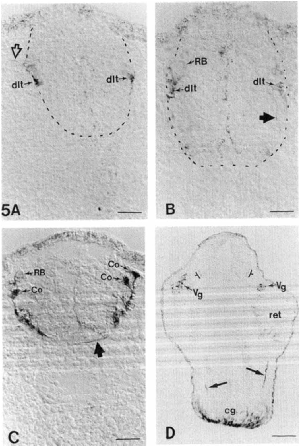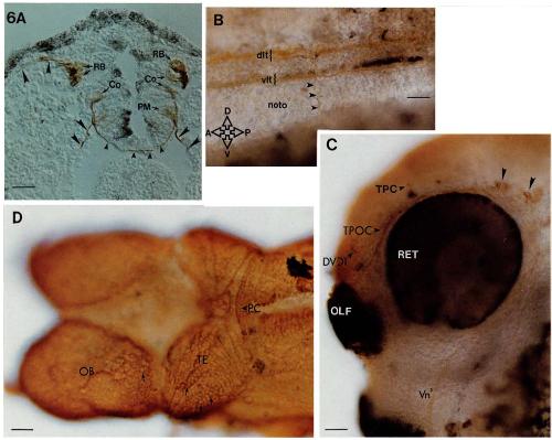 axons (solid arrows). D: Transverse section of stage 26 embryo. Class I1