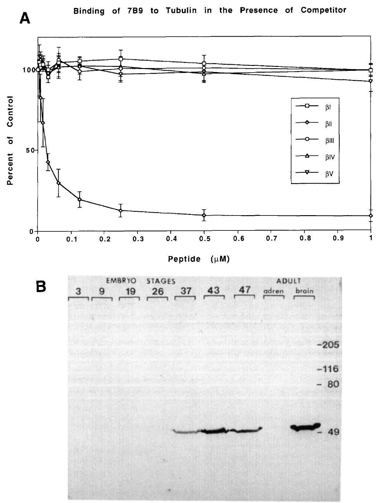 Fig. 2. Characterization of the class I1 p-tubulin antibodies. A The