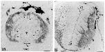 Transverse sections of caudal (A,B) and rostra1 (C) spinal cord from