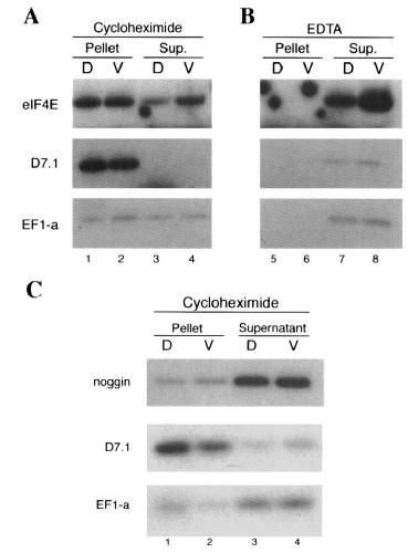 EDTA disruption of polysomes and release of messages. C. Noggin