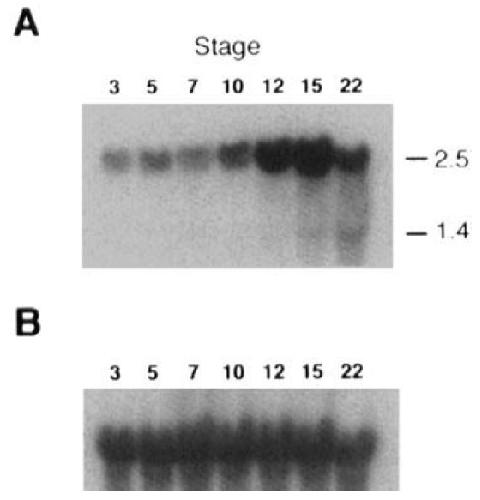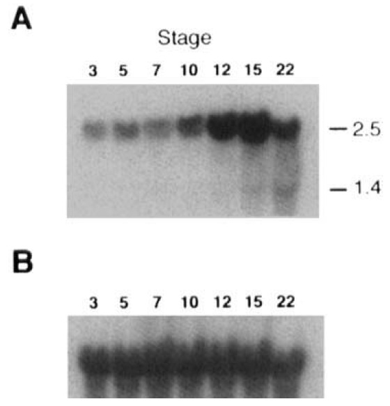 1.4 kB were detected after gastrulation. B. As a control for RNA
