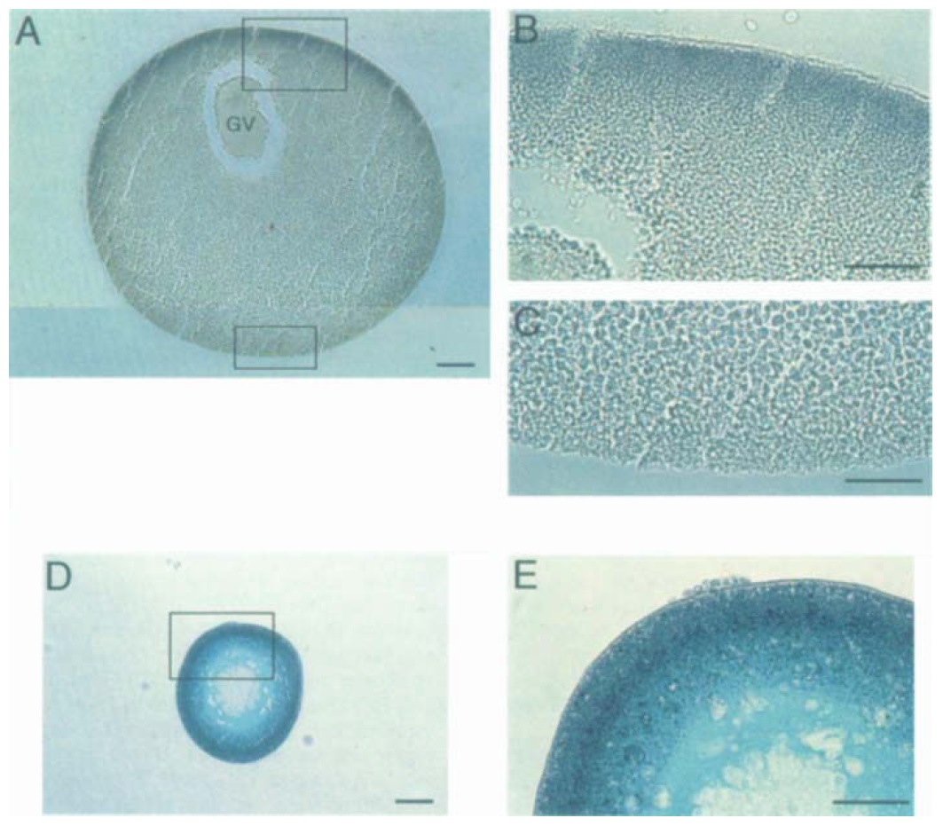 throughout the oocytecytoplasm. E. Enlarged region from D. Sections