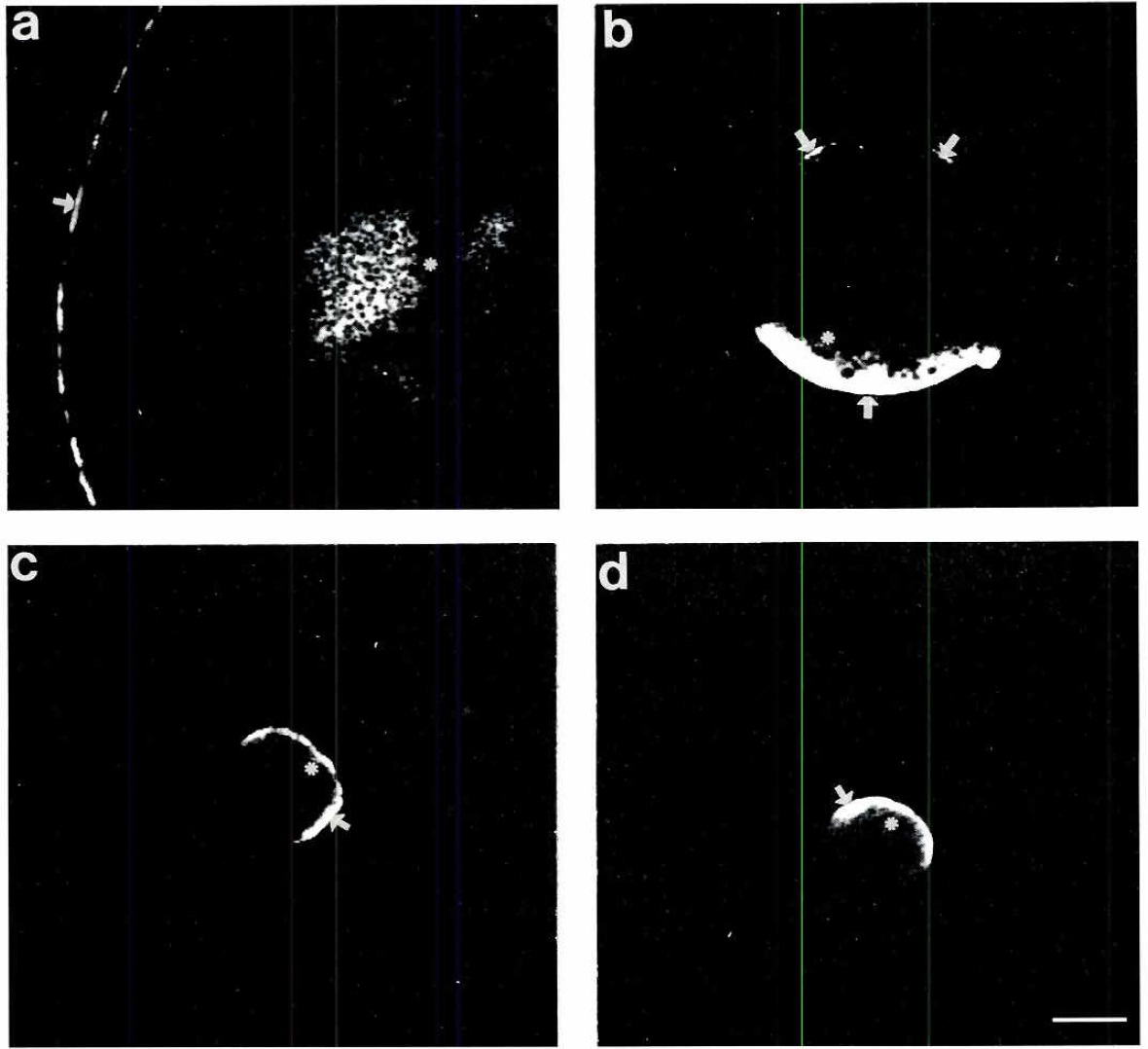 cytoplasm (asterisk) and at the plasma