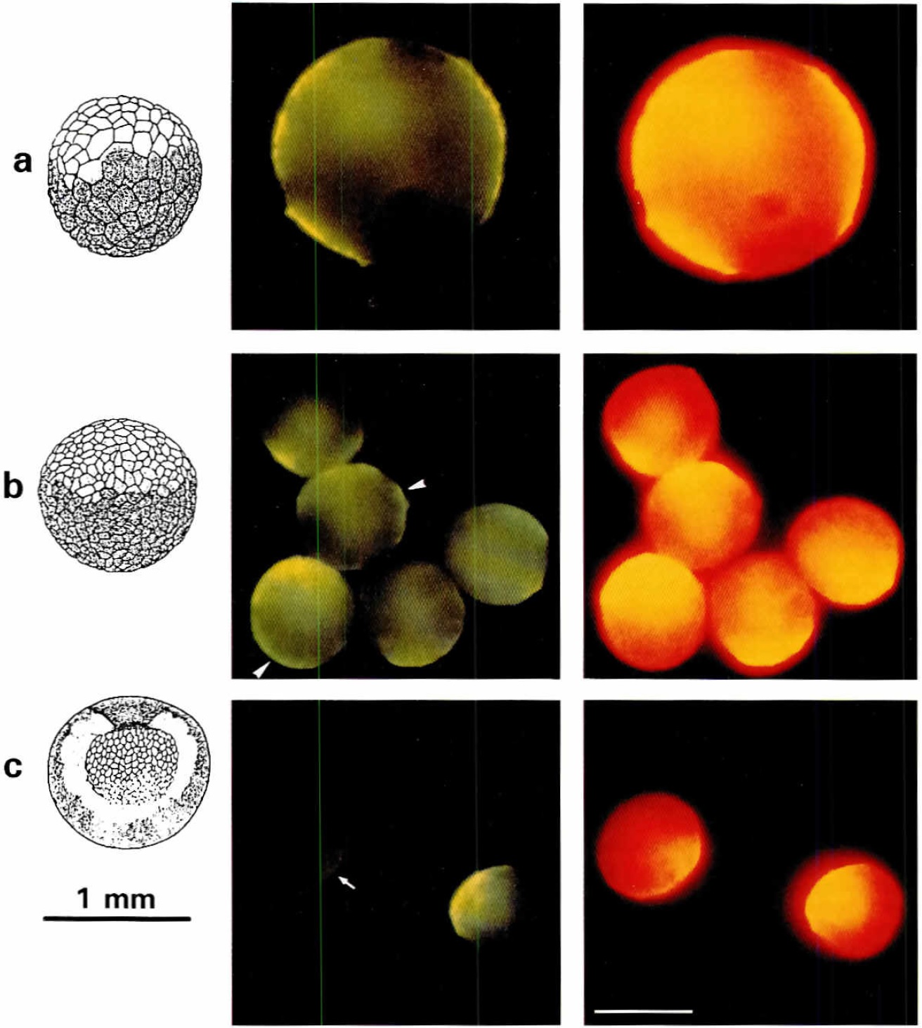 membrane (arrow); (b) ectoderm