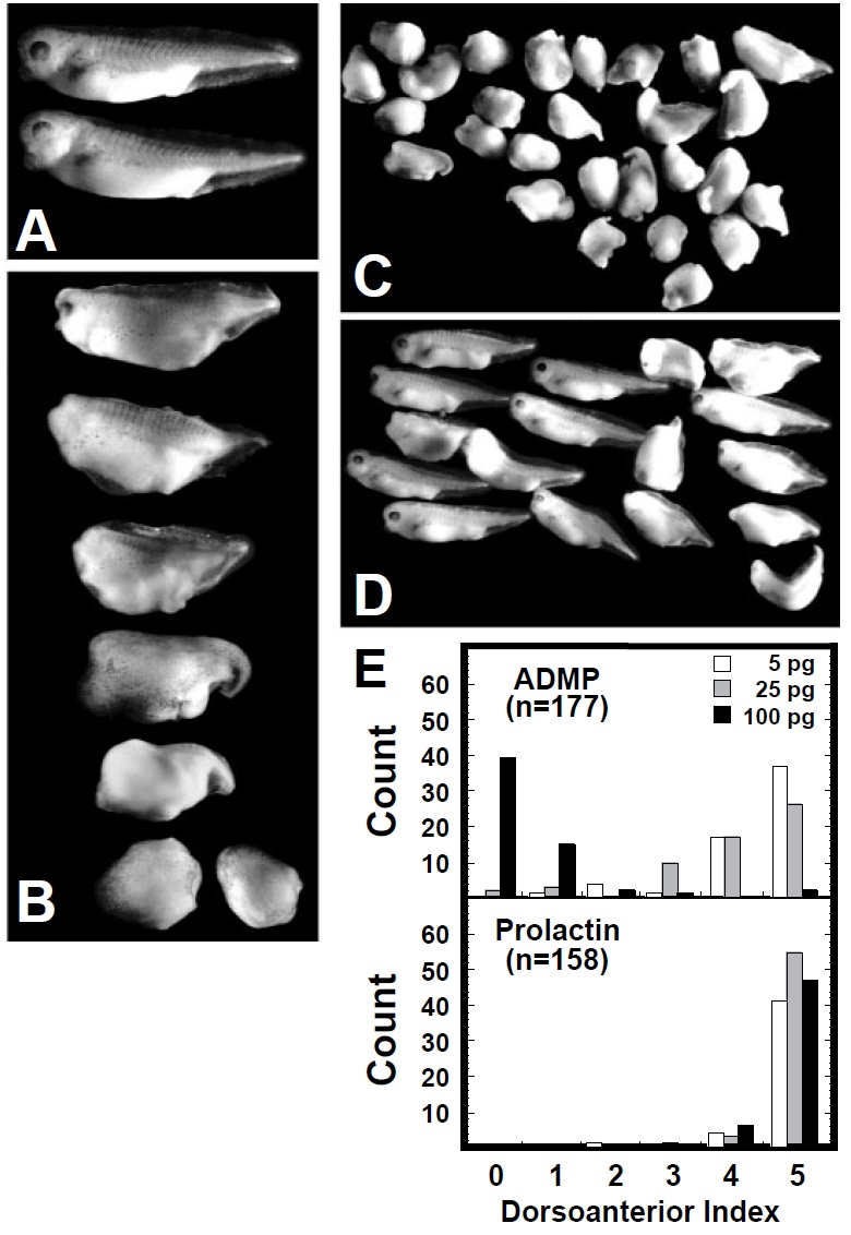and 100 pg of either ADMP or preprolactin mRNA demonstrating