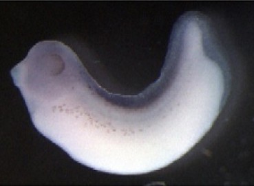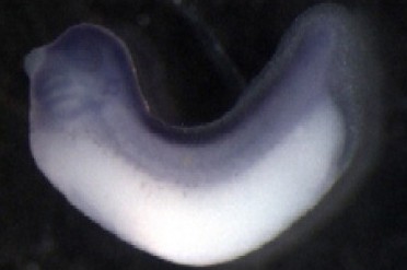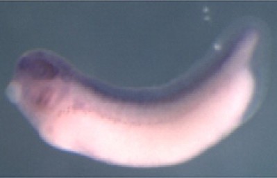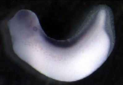 spdl1 (spindle apparatus coiled-coil protein 1) gene expression in Xenopus laevis embryos, NF stage 18, as assayed by in situ hybridization, lateral view, dorsal up, anterior left. \ |