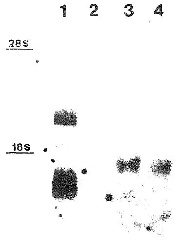 labeled 18S and 28S mark the positions of rat ribosomal RNAs.