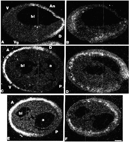 embryo. (C,D) Parasagittal and (E,F) horizontal sections through a stage 12 embryo. An, animal pole; Vg vegetal pole; D, dorsal; V ventral; A,
