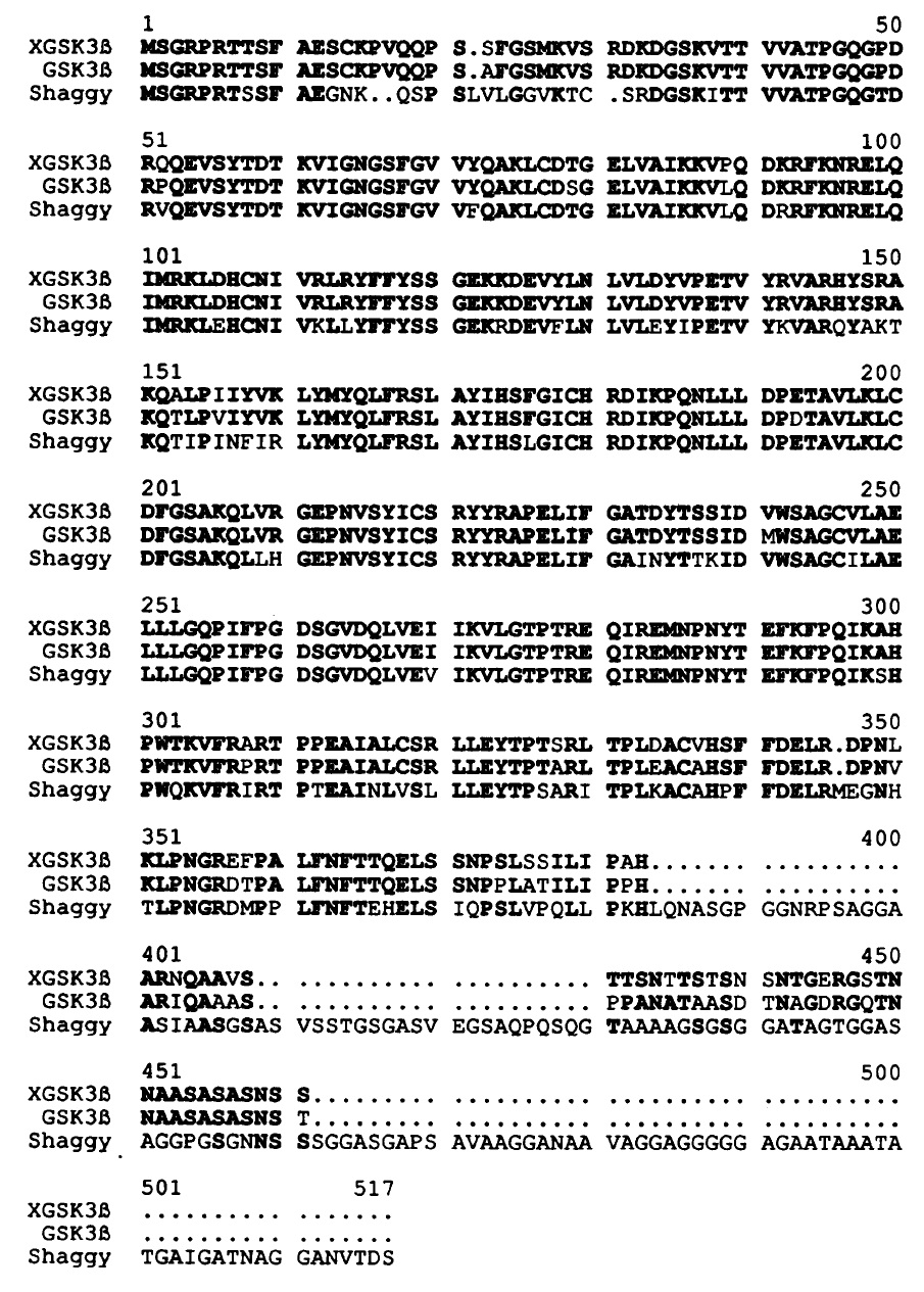 with the Drosophila shaggy and rat GSK-3f3 proteins.