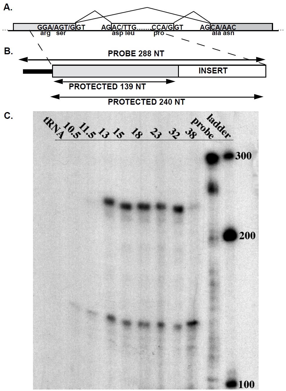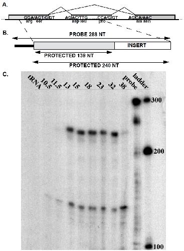 included in unprotected probe. (C) Ribonuclease protection analysis of 10 μg of tRNA