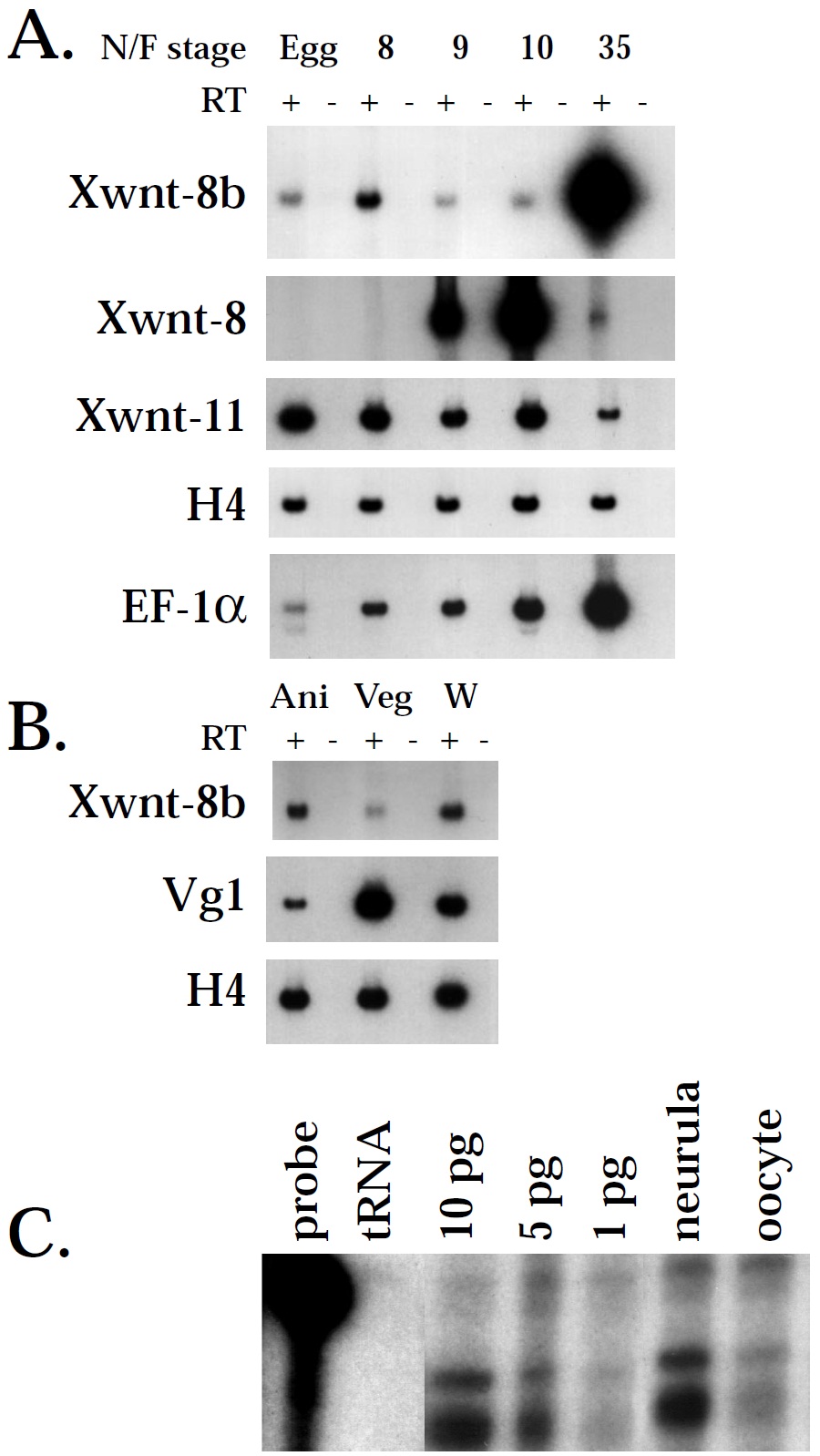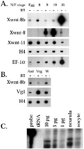protection assay for Xwnt-8b in total RNA samples from oocytes (100 mg) and