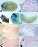 All of the blue signal with the exception of that indicated by arrows was also observed in embryos hybridized overnight with a sense probe