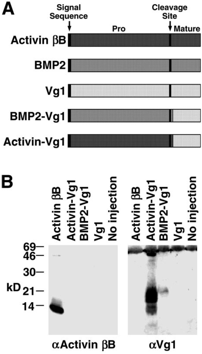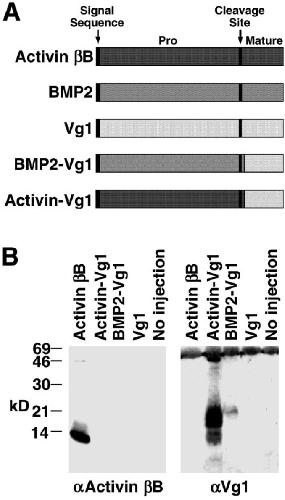 Fig. 1. (A) Chimeric Vg1 constructs. Schematic representation of