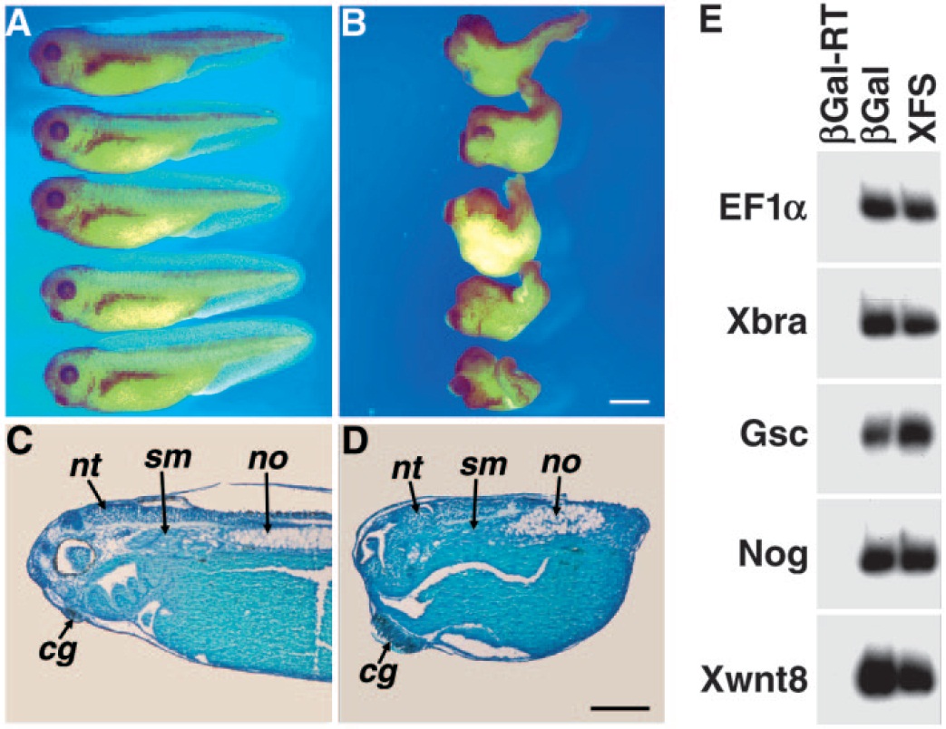 galactosidase (C)- and follistatin (D)-injected embryos (no, notochord; sm, somitic muscle;