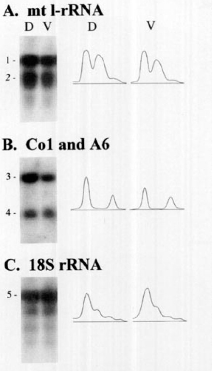 FIG. 1. Mitochondrial RNA is more abundant in dorsal cells than in