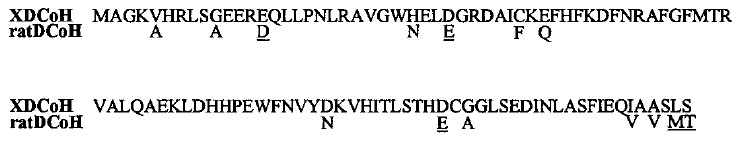 and rat DCoH. Amino acids that differ in the rat sequence from the