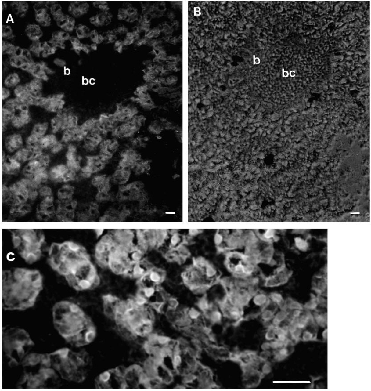 hepatocytes (h), the gut cells (g) and in the pigmented
