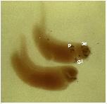 developmental stages examined were egg (e), 2-cell stage (2) and various stages up to the three days old larvae that were determined as