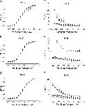 Figure 4. . Voltage dependence and kinetics of voltage jump–induced fluorescence changes and comparison with properties of the corresponding transient charge movements under K+-free (Na+/Na+ exchange) conditions. Data originated from oocytes coexpressing the α subunit construct sNaKα1, ØCys together with sβ1-S62C (A and D), sβ1-F64C (B and E), sβ1-K65C (C and F). Left panels show the voltage dependences of normalized fluorescence saturation values (▪) obtained from mono- (A and C) and biexponential fits (B) to the data, and the corresponding normalized values for the translocated charge (□) obtained from integration of the transient currents recorded in parallel. Curve parameters are summarized in Table I. Right panels show the voltage dependence of reciprocal time constants obtained from monoexponential fits of the transient current traces before (▪) and after (□) labeling of oocytes with TMRM, together with reciprocal time constants from fits of fluorescence signals under K+-free conditions (▴) or in presence of K+ (99.9 mM Na+/0.1 mM K+, ○; 99.5 mM Na+/0.5 mM K+, •). Data are means ± SEM from six oocytes. |