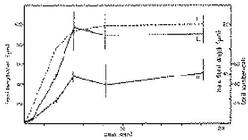 value, as in Fig. 7a, not standard deviations. The average increase in total fibril length per cell (L) during the first 5 minutes is 18 mm/min, the