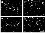 minutes (b), 8 minutes (c) and 18 minutes (d), and stained with FN antibody. Isolated patches of fibrils corresponding in size to single cells