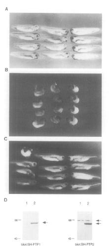 D): embryos injected with XSH-PTP2 RNA (A and C); embryos injected