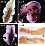 Fig. 5. Whole-mount in situ hybridizations with members of paralogue 6. Arrows indicate the