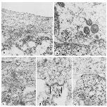 terminal synaptic vesicles do not appear to be concentrated at contact sites (X24 000). (Middle) Infolding of the muscle membrane, with marked thickening of