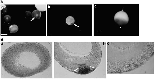 the Vg1 probe. (a) Stage 1 oocytes. The arrow points to the mitochondrial