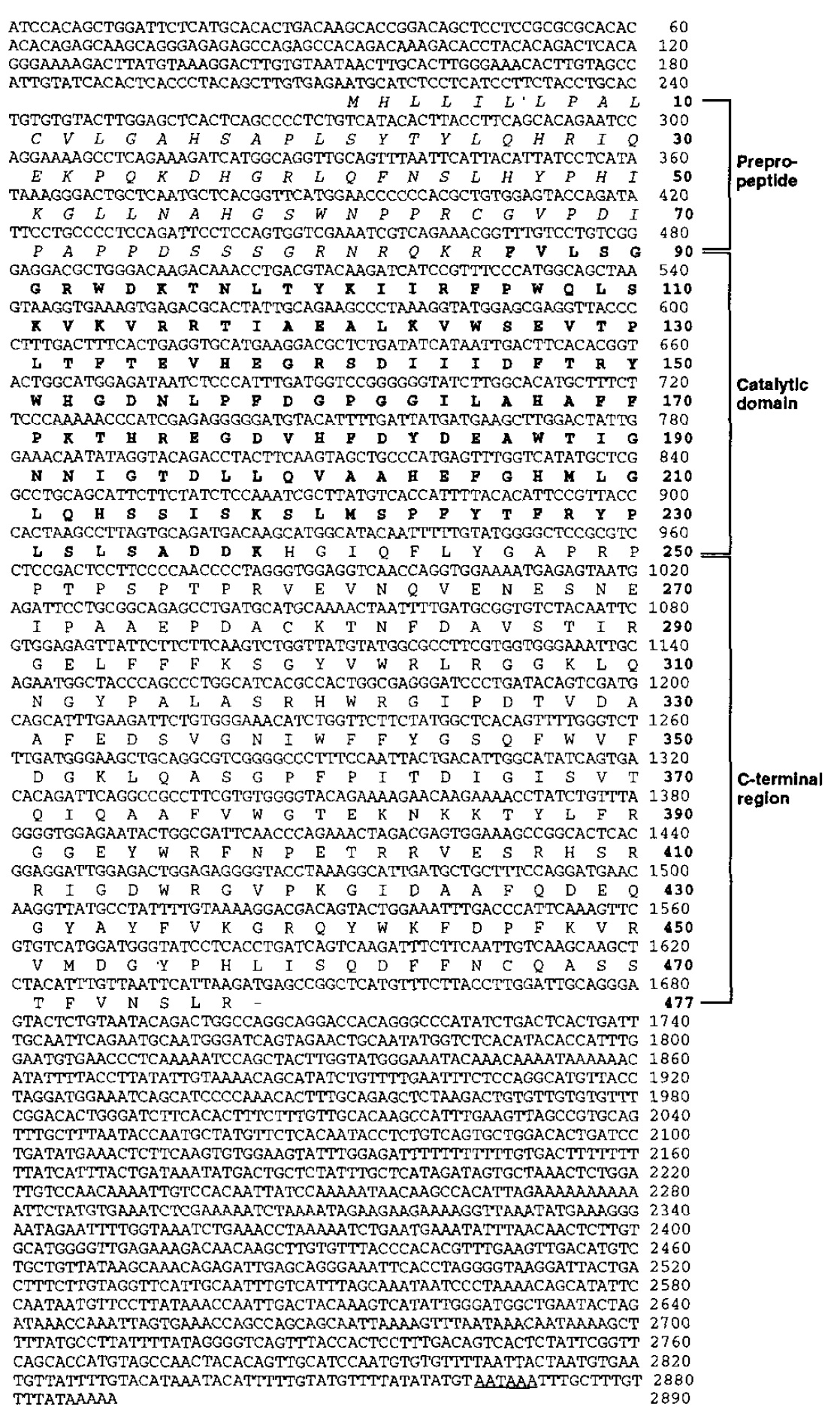 the C-termlnal region. The putative polyadenylation signal sequence is underlined.